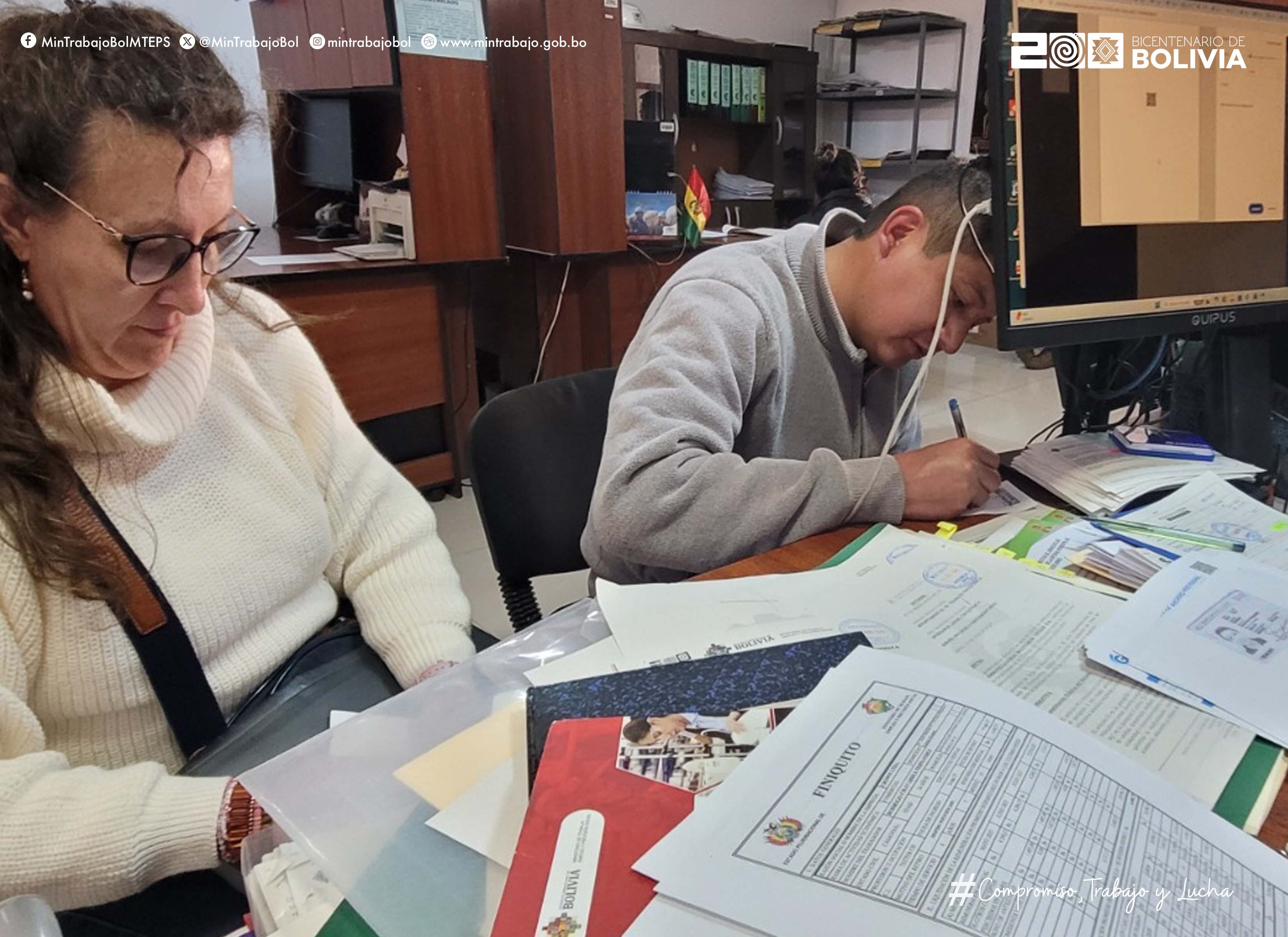 Ministerio de Trabajo, 19 de septiembre de 2025.- La representación de una empresa, junto a un trabajador, se apersonó a la Jefatura de Trabajo de Chuquisaca para cumplir con los procedimientos administrativos para concretar la desvinculación laboral.