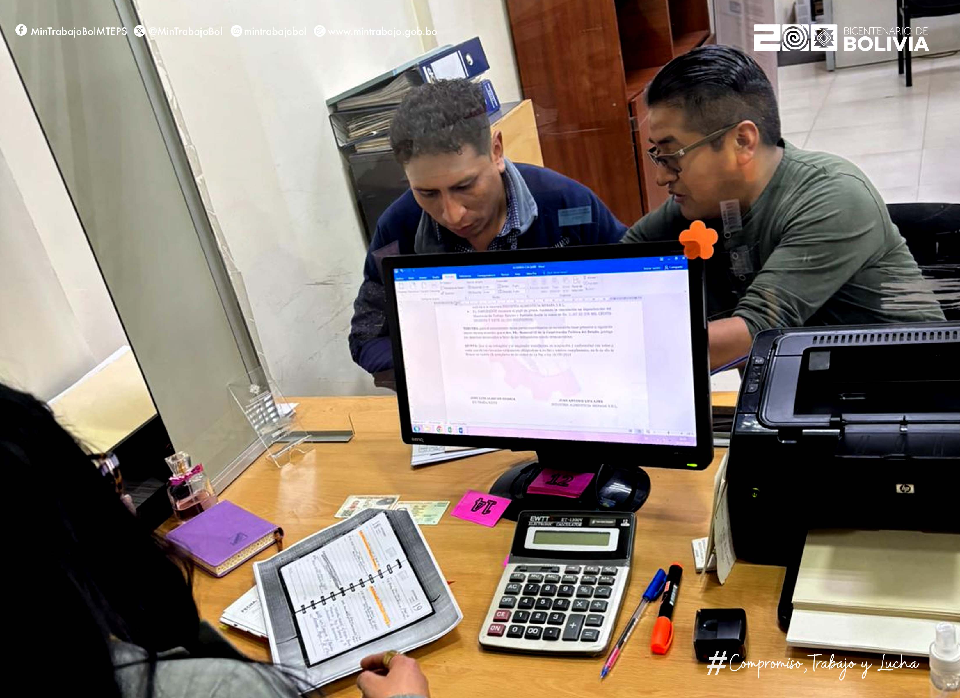 Ministerio de Trabajo, 6 de octubre de 2025.- Tras brindar información sobre los beneficios sociales que corresponden a cada trabajador, la Jefatura Departamental de Trabajo en La Paz logró que una empresa industrial pague el beneficio social de la prima a su trabajador.