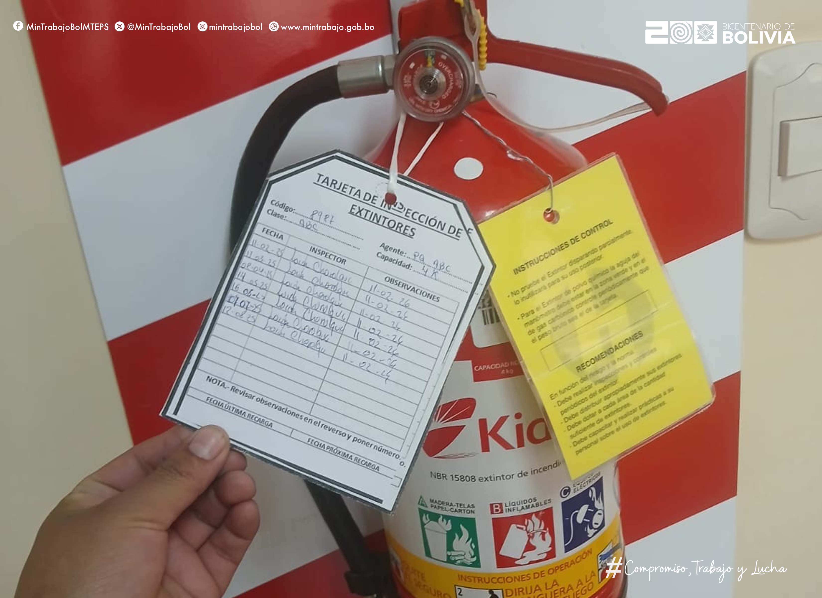 Ministerio de Trabajo, 29 de septiembre de 2025.- Verificando el estricto cumplimiento de las normas legales establecidas en la Ley General de Trabajo y la Ley General de Higiene, Seguridad Ocupacional y Bienestar, la Jefatura de Trabajo en Tupiza realizó la inspección técnica y laboral a la institución financiera Crédito con Educación Rural.