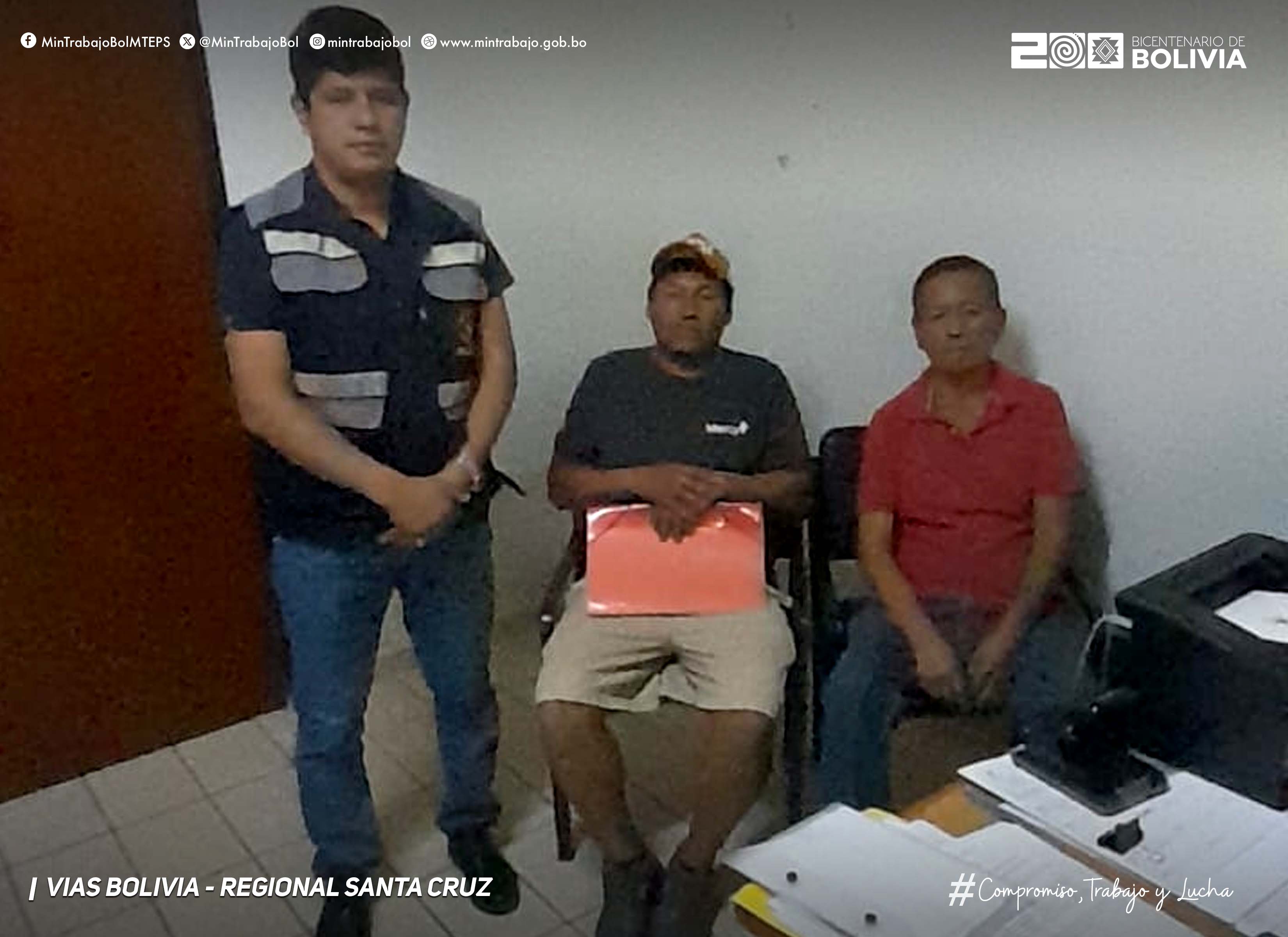 INTERVENCIÓN DEL MINISTERIO DE TRABAJO EN SANTA CRUZ VIABILIZA PAGO DE BENEFICIOS SOCIALES A TRABAJADOR