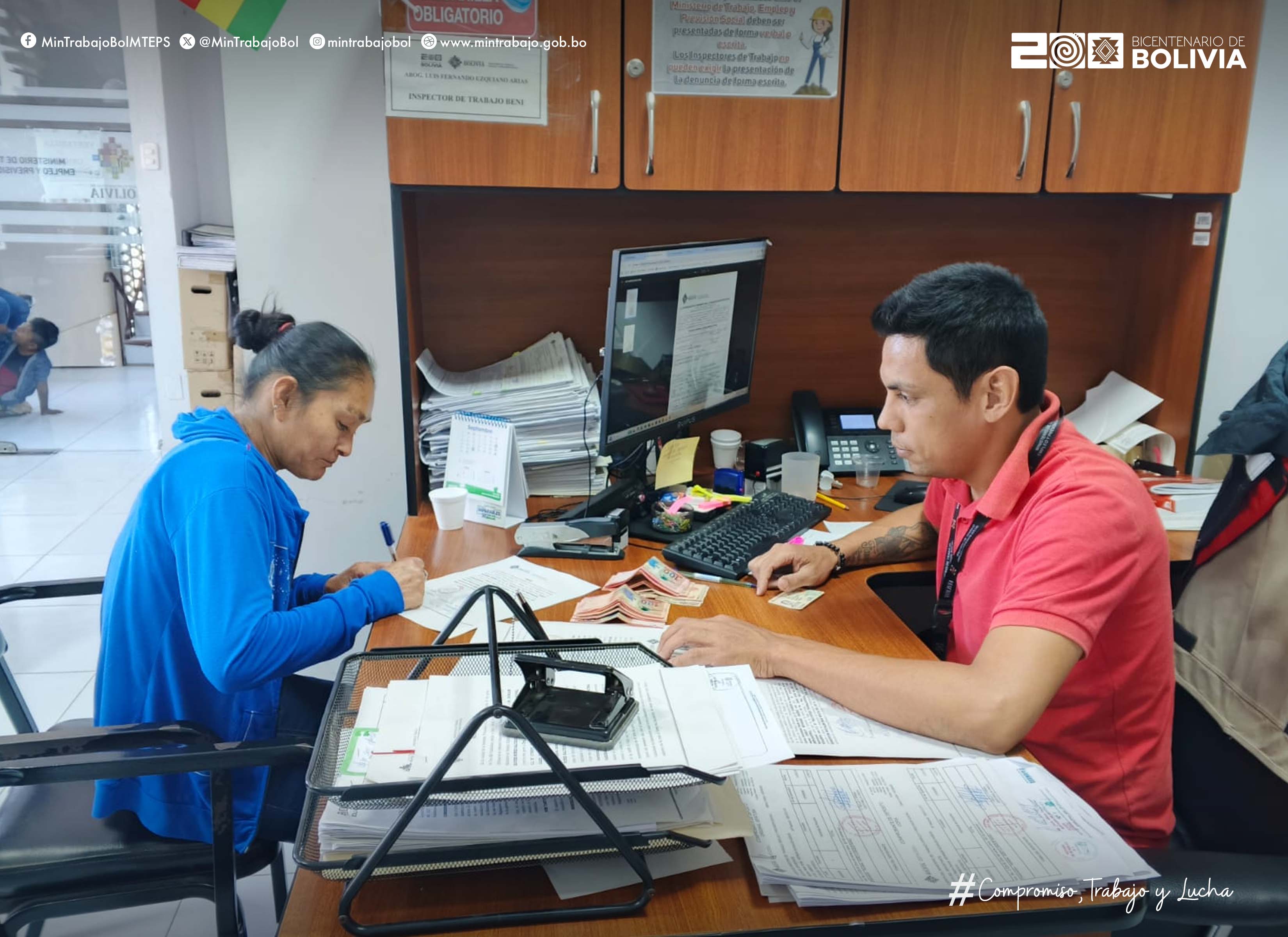 Ministerio de Trabajo.- Una trabajadora encargada de la limpieza en una empresa en Beni acudió al Ministerio de Trabajo en esa región para solicitar la intervención y obtener el pago de todos los beneficios sociales correspondientes a los 6 años de trabajo continuo que desempeñó.