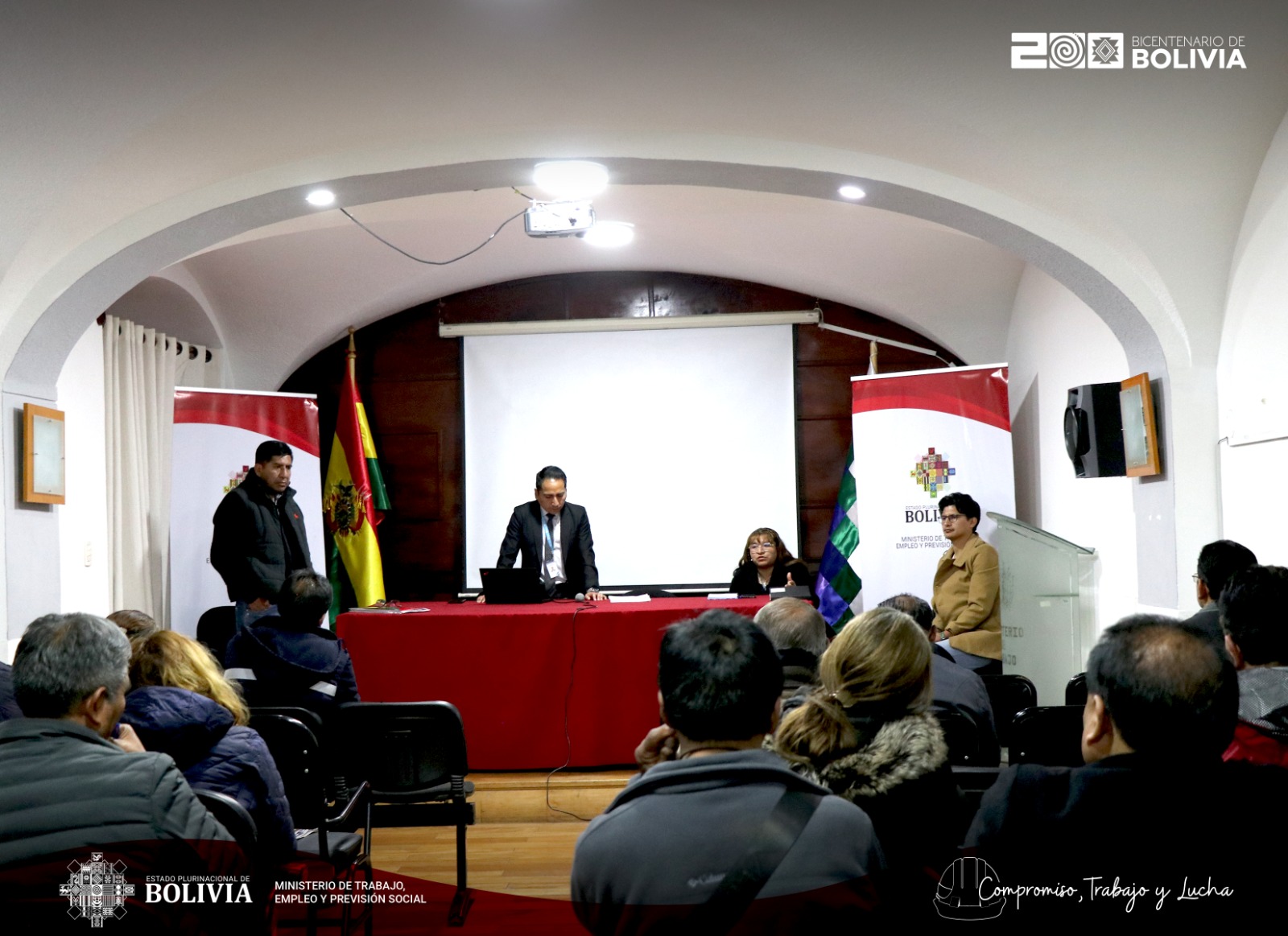 En la tarde de este martes, 19 de agosto, en el salón Juan Lechín del Ministerio de Trabajo, Empleo y Previsión Social, se suscitó una capacitación y posterior reunión de coordinación, encabezada por la Dra. Ninoska Loza, jefe departamental de Trabajo La Paz, el Dr. Boris Fernández, responsable de Asuntos Sindicales, ambos representantes por el Ministerio de Trabajo; el Subgerente Nacional de Cobranza Administrativa de la Gestora Pública de la Seguridad Social de Largo Plazo, Carlos Eduardo Huancollo Miranda, y el Sindicato de Trabajadores de COTEL, a la cabeza de su secretario General, Javier Mamani.