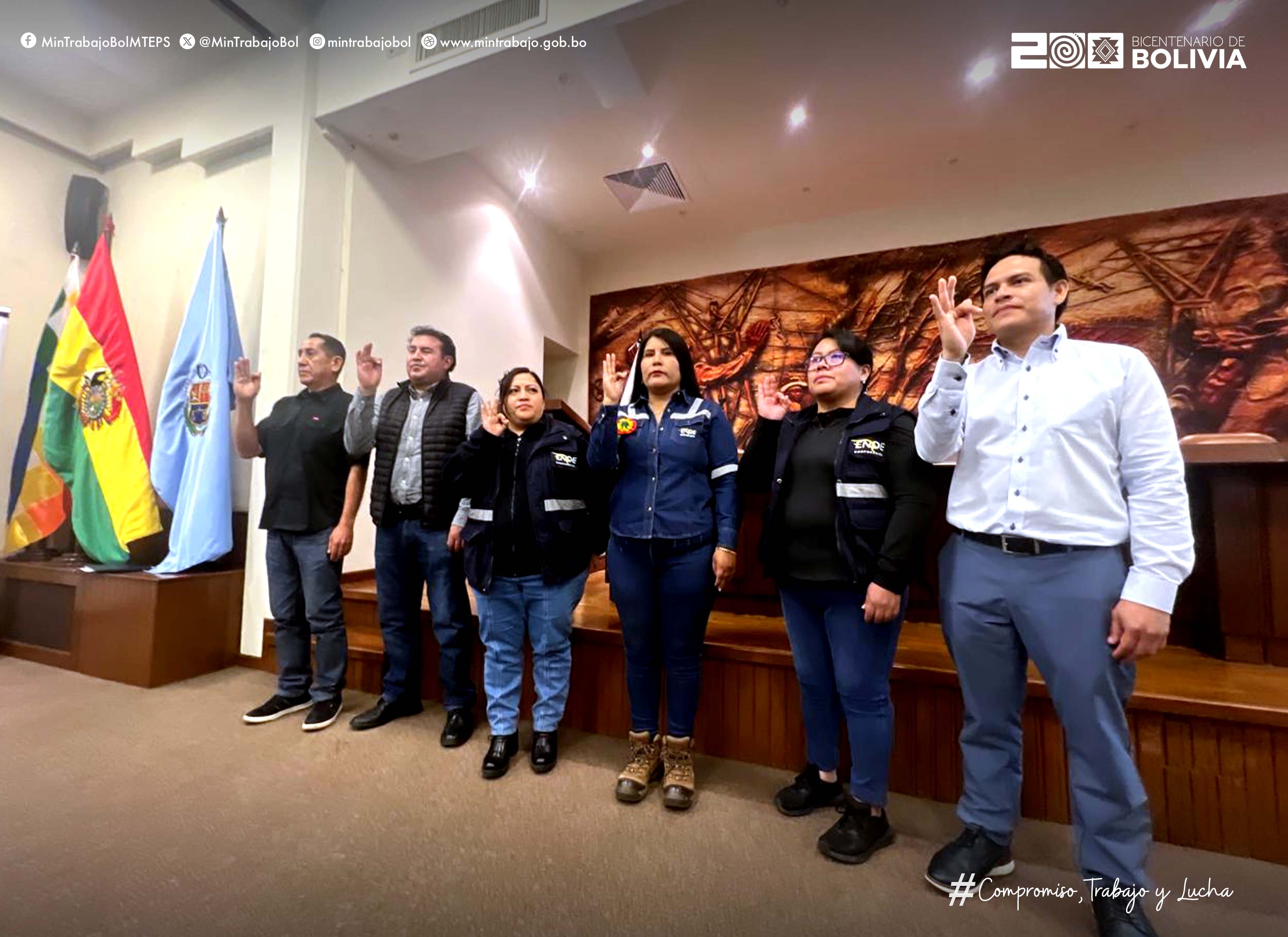 En cumplimiento de sus atribuciones, personal del Ministerio de Trabajo en Cochabamba tomó el juramento, entregó el acta de posesión y brindó la capacitación respectiva a los miembros del directorio de este comité.