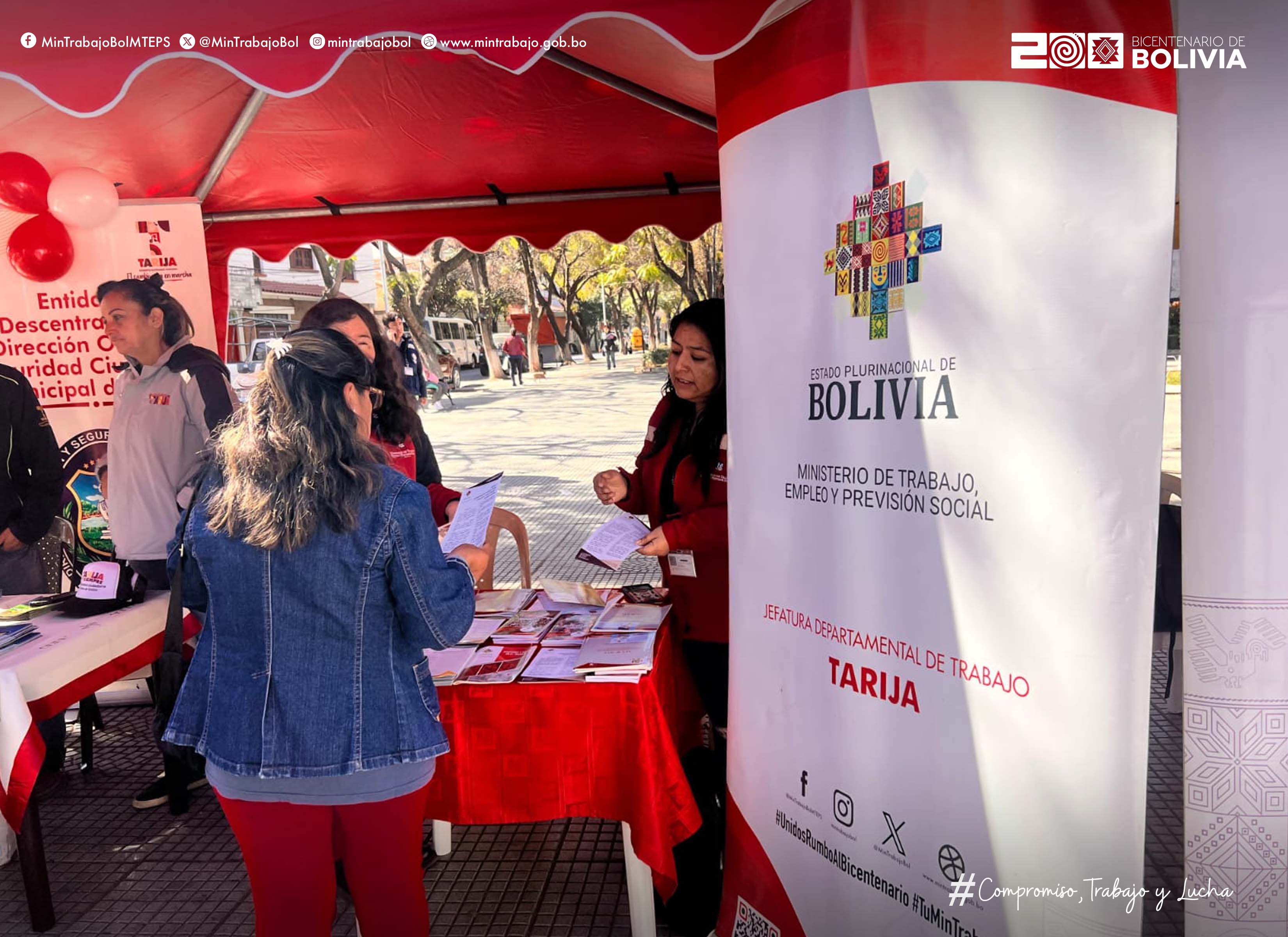 El Ministerio de Trabajo, Empleo y Previsión Social, con representación en Tarija, participó de la Feria interinstitucional, en la que informó a la población sobre los riesgos a los que se exponen con algunas ofertas laborales promocionadas por redes sociales o agencias de empleo. Sobre este último punto, informó que esta cartera de Estado ya cuenta con una nueva reglamentación para que estos negocios no sean un espacio para captar personas para explotarlas. La normativa dispone que las agencias privadas de empleo deben acudir primero al Ministerio para iniciar su trámite de funcionamiento, obteniendo una certificación.