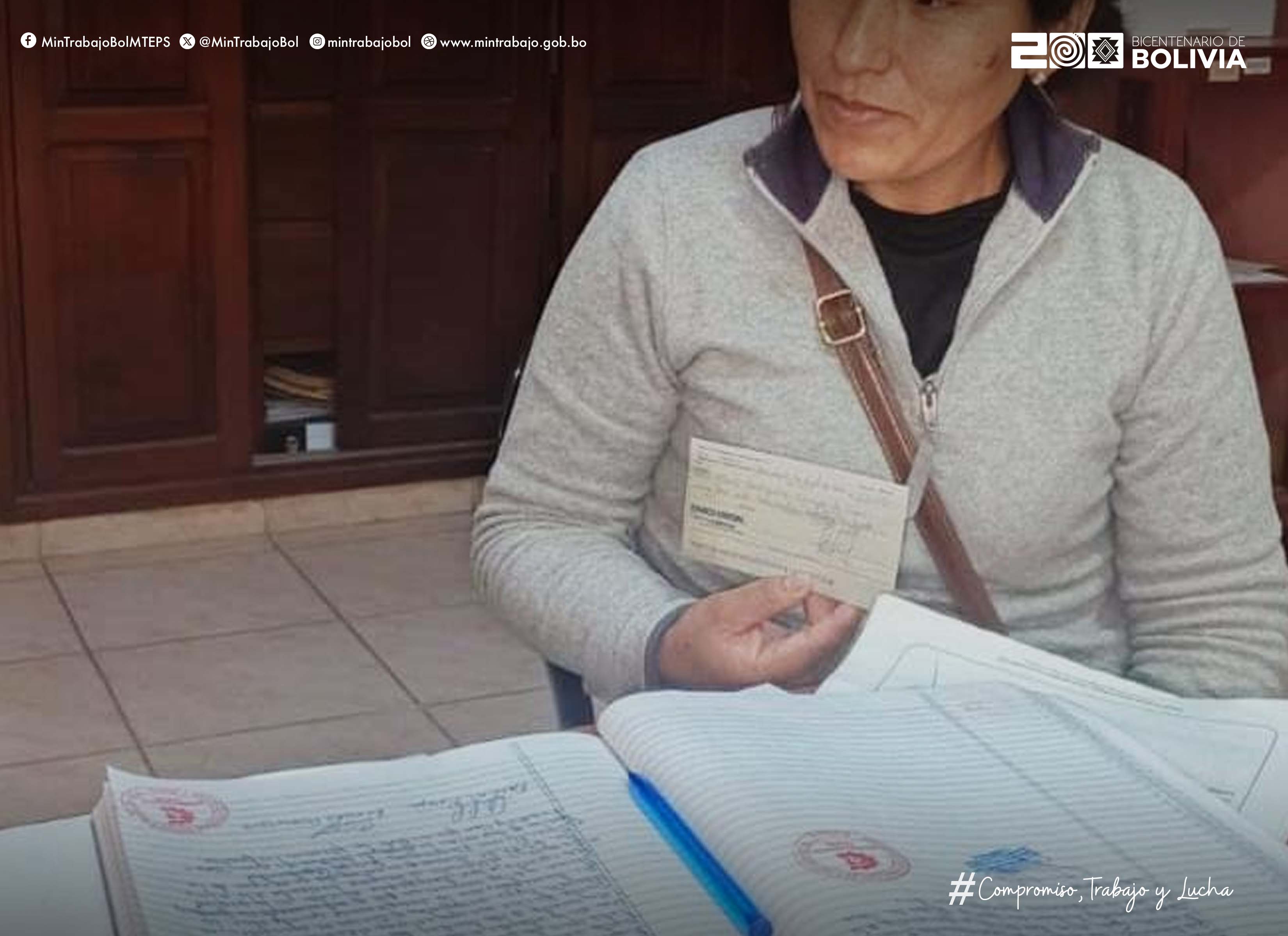 Ministerio de Trabajo.- Tras la denuncia realizada por una trabajadora por el incumplimiento en el pago de beneficios sociales, la jefatura de trabajo en Yacuiba realizó los actos administrativos para garantizar la restitución de sus derechos laborales.