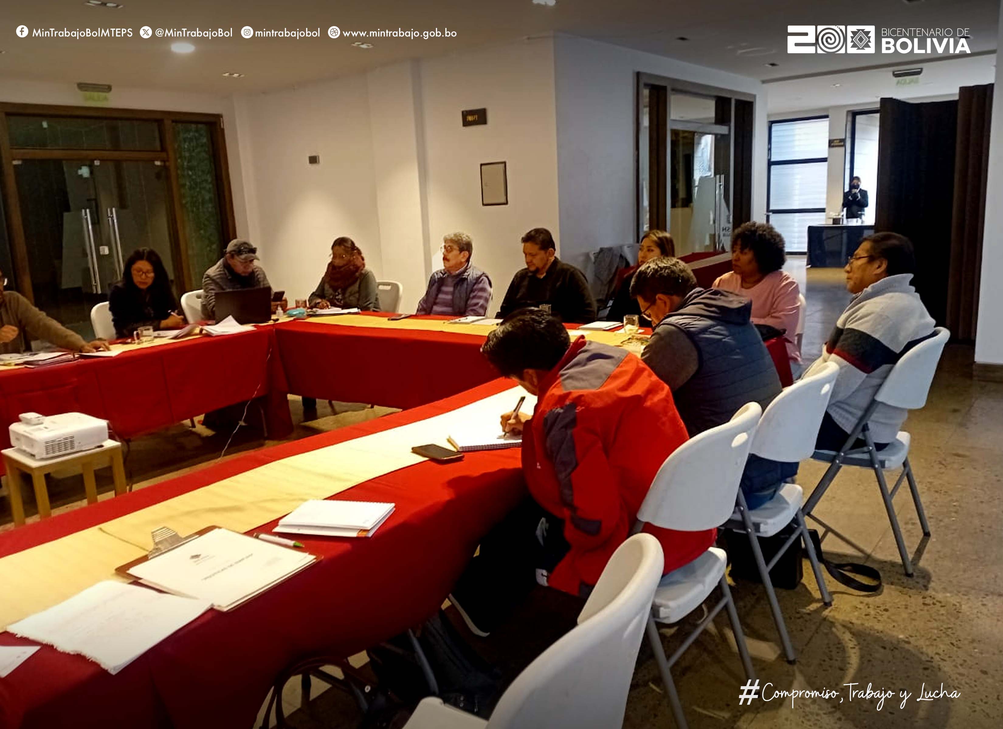 El Viceministro de Empleo, Servicio Civil y Cooperativas, Gonzalo Zambrana, lideró esta reunión en las instalaciones del Hotel Matadero de la Ciudad de La Paz.