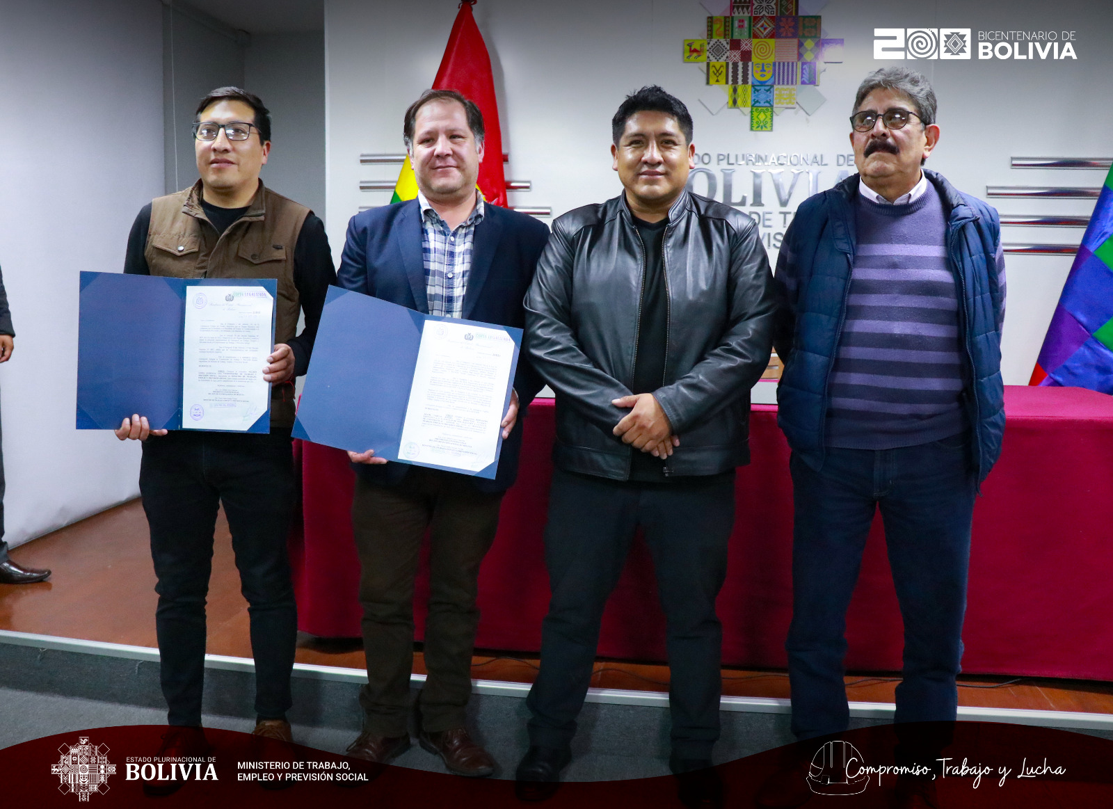 Ministerio de Trabajo, 14 de octubre de 2025.- La tarde de este martes, el ministro de Trabajo, Empleo y Previsión Social, Víctor Pedro Quispe Ticona, posesionó al nuevo viceministro de Trabajo y Previsión Social, Nelson López, y al director ejecutivo de la Autoridad de Fiscalización y Control de Cooperativas (AFCOOP), Bernardo Vargas.