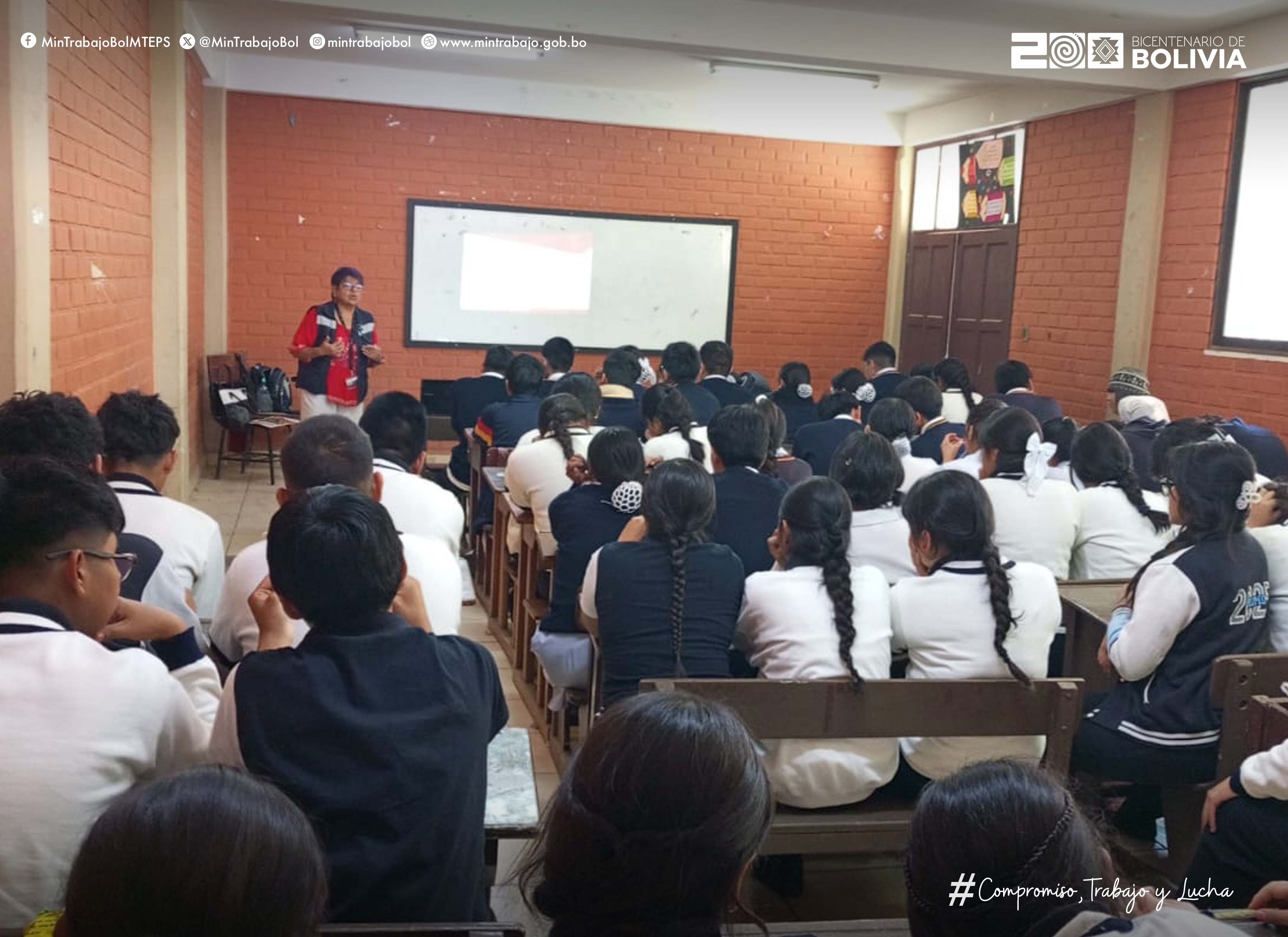 Ministerio de Trabajo.- La Unidad de Derechos Fundamentales, dependiente del Ministerio de Trabajo, en cumplimiento de las actividades planificadas para la presente gestión, llevó a cabo un taller de Equidad de Género dirigido a estudiantes de nivel secundario y universitario en el departamento de Cochabamba.