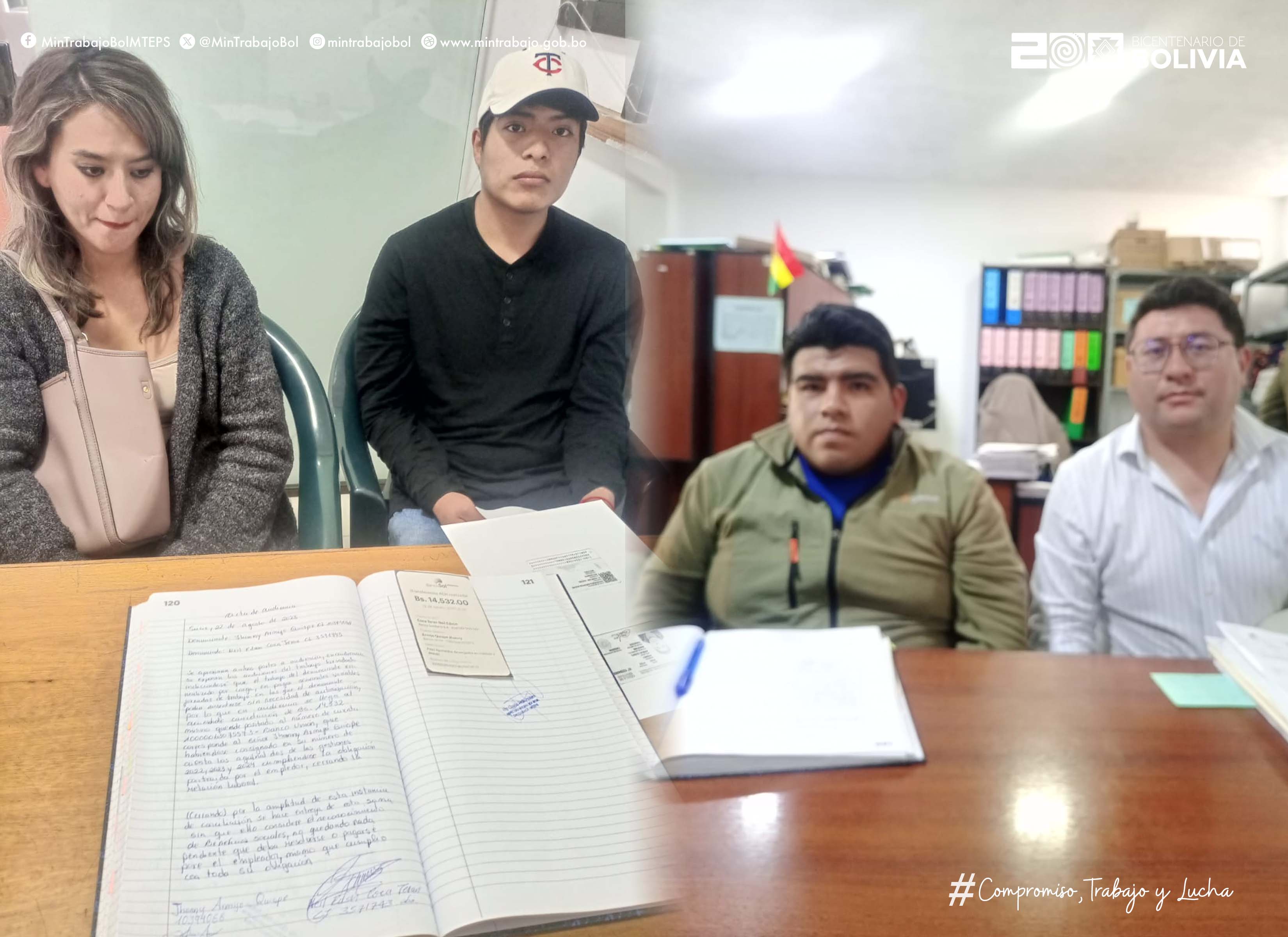 GESTIONES DEL MINISTERIO DE TRABAJO PERMITEN A DOS TRABAJADORES COBRAR BENEFICIOS SOCIALES EN CHUQUISACA