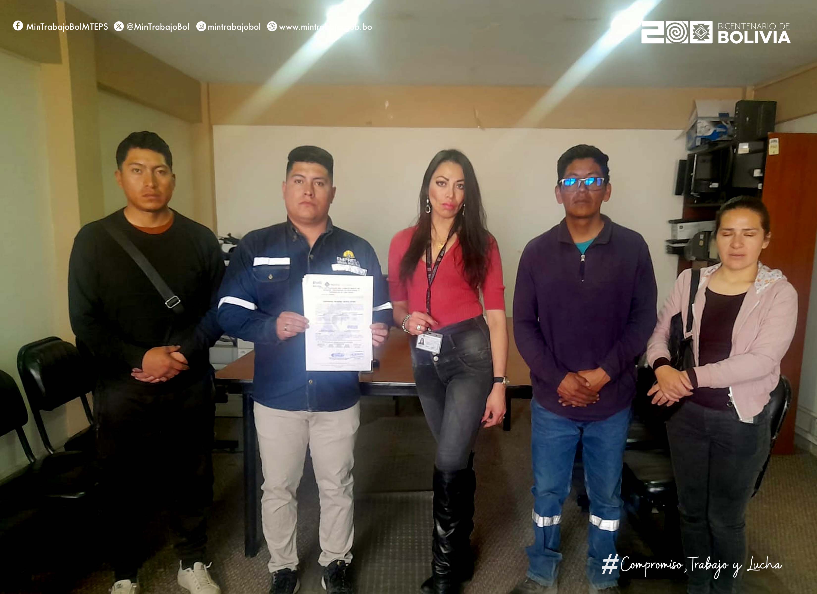 Ministerio de Trabajo, 10 de octubre de 2025.- Tras recibir la denuncia de un grupo de trabajadores de la construcción contra su empresa por el impago de salarios, el Ministerio de Trabajo en Tarija emitió una citación para una audiencia de conciliación, con el objetivo de restituir sus derechos laborales. Fueron cuatro trabajadores quienes solicitaron …