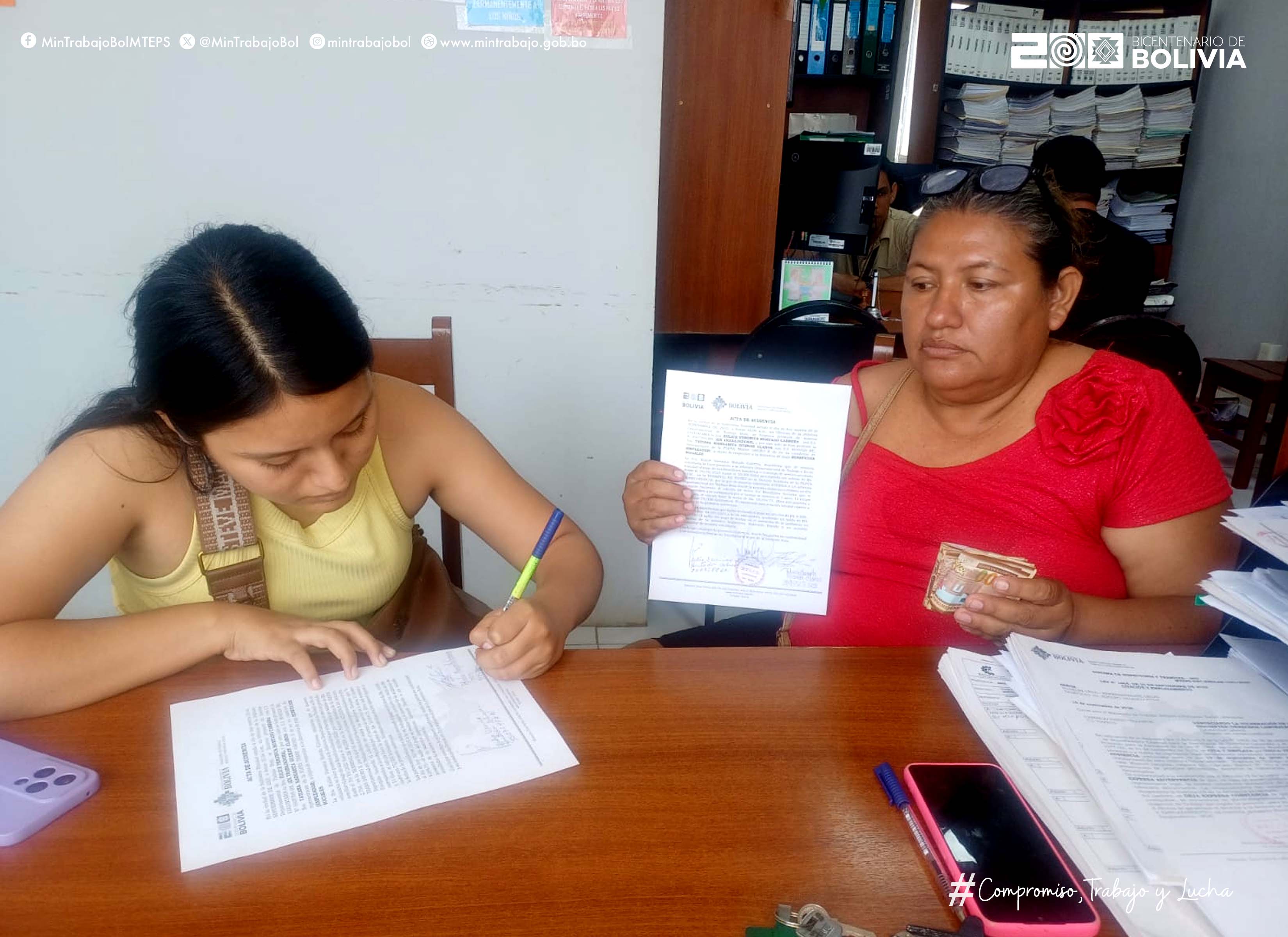 Ministerio de Trabajo, 14 de octubre de 2025.- La Jefatura de Trabajo en Beni, a través de una audiencia, consolidó el pago total de beneficios sociales a favor de una trabajadora. La trabajadora era boletera de una empresa de transporte, quien solicitó el pago de sus beneficios por el tiempo de servicio prestado desde octubre …